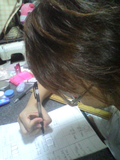 私の心を込めて製作した衣装たちが動いていました☆(笑) うほー♪(≧∀≦) 衣装を作ってうれしいのは、役者さんが着て動くのを観ること☆ そして役者さんのテンションが上がるのを観ること(笑) 作ってよかったなーって思う瞬間です(´ー`) そしてメイクチーフのゆかちゃんが「ゆか美容室」を開き(笑)、メイクをしてあげたりウイッグをつけてあげたりしてました。 私も「かれん美容室」を開き、ヘアメイクやりました~☆ しかし、かれん美容室に来た人は、私の好み全開の仕上がりに…(笑) 私っぽい人が増殖してウケました(爆) みんなよくお似合いでしたわ♪ 今回も公演記念ミニうちわを作るため、写真撮影もしました(・∀・) 全五種類、一枚200円です☆ 公演時に販売いたします! ご希望でしたら、役者さんみんながサイン入れてくれますので、ぜひ記念に一枚いかがでしょうか?☆ どんなうちわが出来上がるかは楽しみにしていてください!!! うちのうちわ職人が総力を上げて一人で作ってくれますので(爆笑) |
