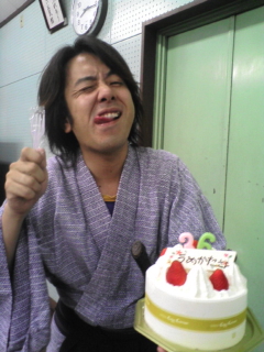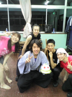 6月26日は梅方さんの誕生日!! なので25日の稽古で前夜祭をしましたヾ(^▽^)ノ おめでとうございます! 私がケーキを持って行くと、みんながハッピーばーすでぃトゥゆー☆を歌ってくれました(^-^) うふふ。 よかったですねー、梅方さん('-^*) 七月からの殺陣の振り付けがんばってね(笑) |
